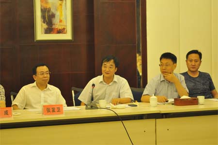 枝江酒業(yè)董事長蔣紅星(左二)在會上發(fā)言 7月5日,宜昌市工商聯(lián)合會主席張發(fā)衛(wèi)一行到枝江酒業(yè)參觀,市工商聯(lián)(總商會)各副主席、副會…