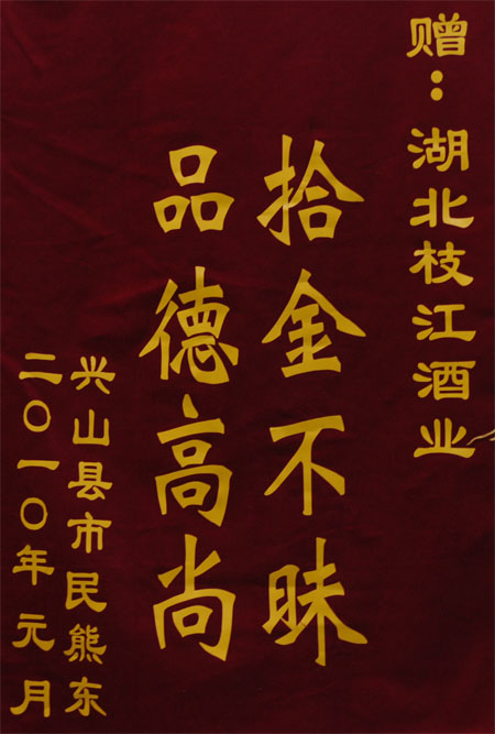 2月2日,來自興山的一個青年男子將印有“拾金不昧,品德高尚”字樣的錦旗,送到枝江酒業工會辦公室,以表達對拾金不昧的枝江酒業員工夏險峰的…