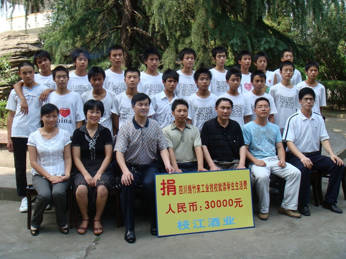 本報(bào)訊(通訊員 蔡 兵)6月25日,枝江酒業(yè)資助20名綿竹災(zāi)區(qū)學(xué)生捐款儀式在宜昌市工業(yè)技工學(xué)校會議室舉行,該公司工會主席楊家法將3萬元捐款遞…