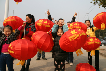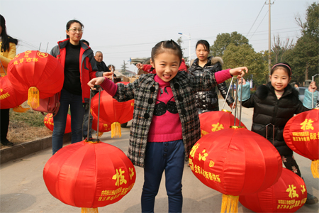 春節前夕,枝江城區的迎賓大道、團結路、沿江大道、民主路、公園路、江漢大道等城區主要道路兩旁全部掛上了主題為“誠信吉祥”的“有德吉祥燈”。紅紅的燈籠不僅裝點了城市的節日喜慶氣氛,更是一種崇尚道德的深情表達。由中共枝江市委宣傳部和枝江酒業集團聯合推出。圖為1月26日,枝江酒業員工和孩子們協助工作人員在江漢大道上掛燈籠的畫面。