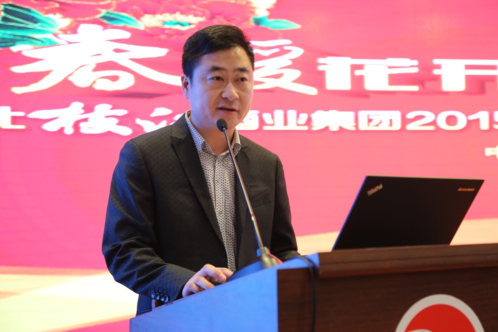 枝江酒業總經理陳洪衛在大會上做了《春暖花開,共贏未來》的主題報告。他在報告中總結銷售工作取得的成績,枝江酒業市場及產品結構經過近三年的調整,已經形成產品層次定位分明、市場區域布局合理、獎懲制度兌現及時、營銷機制不斷創新的良好局面。從以前按區域劃分銷售管理范圍調整為按產品劃分,形成了王級、普酒、百年、健康四大事業部,以縣級市場為基礎,大力實施“百城萬店”工程。確定了銷售人員的計劃目標、客戶目標以及理想目標。調整后的四大事業部,確立的三大目標,為枝江品牌新一輪的發展奠定了非常好的基礎。2015年,枝江酒業集團的白酒主業主要經濟指標將比上年增長20%以上,集團計劃實現總收入150億元。圍繞這個總體目標,枝江酒業將以“中國白酒名城”為依托,抓好改革創新與經營升級。陳洪衛要求全體廠商隊伍,要做好“狠抓基礎建設、深化組織變革、優化廠商模式、調整營銷策略、推動創新發展”等五個方面的工作。