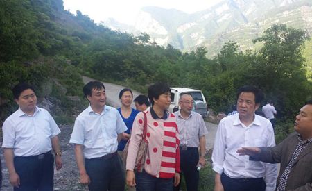 圖為蔣紅星董事長(左二)、省委統戰部副部長、省工商聯黨組書記曹立明(右二)等在鴨兒坪村調研。