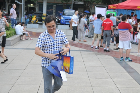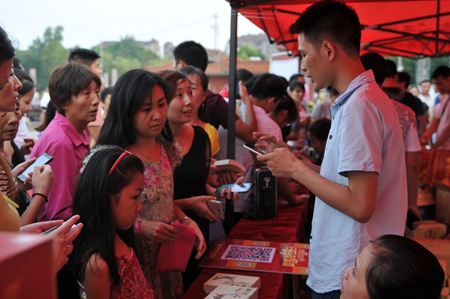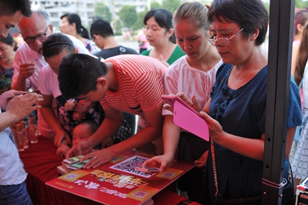 8月13日傍晚時分,枝江酒業(yè)為家鄉(xiāng)人民傾力打造的微信掃碼贈酒體驗活動仍在繼續(xù)。經(jīng)過三天形式多樣的活動體驗,通過參與市民的口口相傳,這天的活動現(xiàn)場還迎來了幾位特殊的參與者,他們是周邊市場的分公司經(jīng)理及經(jīng)銷商老板。松滋分公司經(jīng)理陳偉說,看到枝江酒業(yè)官方微信上如此火爆的活動現(xiàn)場,公安代理商鄭老板表示一定要過來學習學習。為了回饋廣大市民不斷高漲的熱情以及對枝江酒業(yè)長期以來的支持與關(guān)注,這天的掃碼獎品中還特意增加了口碑極好的“十五年經(jīng)典”作為活動的大獎。另外,活動展臺上還展出了枝江酒業(yè)美文集《枝江酒·時光韻》供市民隨時閱讀與分享,受到了廣大文學愛好者的青睞,短短幾分鐘,工作人員準備的一整箱50本書就被一搶而空。這也是繼《酒城之戀》受到廣場舞愛好者熱捧以來,枝江酒業(yè)再一次在酒城文化上得到市民的充分肯定。這個夏天,枝江酒,演繹了枝江人不一樣的傍晚醉!