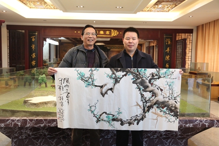 1月28日,國家一級美術師彭宗明到枝江酒業采風。在枝江酒業銷售總經理侯先圣的陪同下參觀了歷史文化展廳、釀造五車間、包裝三車間,對枝江酒業的歷史文化和獨特的釀造技藝表現出濃厚的興趣。在枝江酒業展廳,彭宗明現場揮毫潑墨,即興創作了“風雨兩百年,柔雅一枝香”、“百年枝江,香滿乾坤”兩幅畫作。
