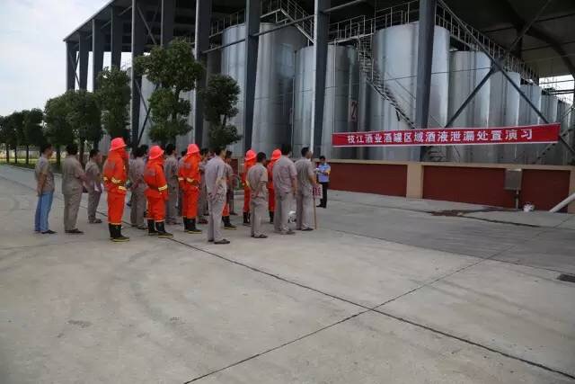 隨著一聲令下,現場警戒組、管道堵漏組、沙袋堵漏組、射水稀釋組進入罐區展開應急處置……6月23日上午8時30分,一場緊張有序的酒罐區域酒液泄漏處置演習在枝江酒業五萬噸灌裝中心舉行。此次演習旨在提高酒庫員工對酒體泄漏的應急處置能力,檢驗公司微型消防站戰斗人員的實戰技能,增強全員安全意識。