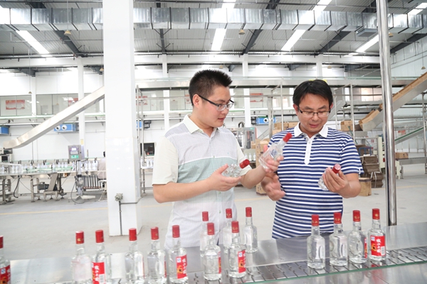 包裝調度安鵬程(右),2011年入黨。“在枝江酒業加入黨組織,一直心懷感恩。”