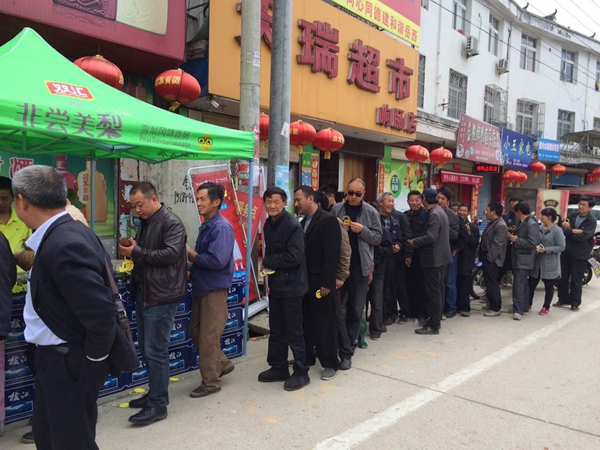 四是做好口碑宣傳。藍柔的酒質好是我們枝江酒業真正的一個優勢,業務員到每家店,從柜臺隨便拿一瓶酒(事先心中有數的同類產品)教老板看配料表,看質量等級。每去一次,宣傳一次,耳濡目染?!敖涍^幾次選擇,很多店老板不僅自己喝我們酒,還會按我們方式跟消費者推薦。這樣,加大了產品的推力”。五是鋪完一個鄉鎮后,及時啟動消費者互動,即“二元換購活動”,在活動之前,“我們提前2到3天對這個鄉鎮進行轟炸式的海報宣傳,從后期動銷來看,效果比較好”。