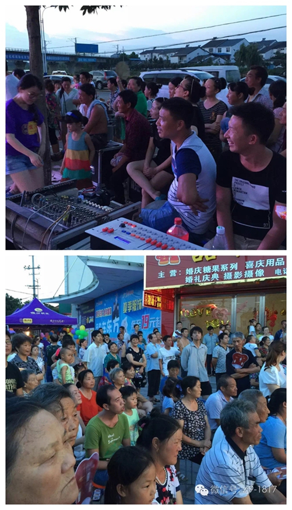 7月23日,枝江酒業(yè)在安福寺鎮(zhèn)舉辦“動感夏日 魅力枝江”鄉(xiāng)村行文藝演出,為當地群眾帶來豐富的文化套餐。這是枝江酒業(yè)在這個夏天“送戲下鄉(xiāng)”的第一站。枝江酒業(yè)總裁曹榮開、銷售公司總經理侯先圣到文藝演出現(xiàn)場,與代理商趙勇、王春華、王國慶一起就新品推廣做調研。