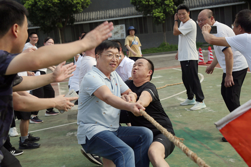 看,那只“袋鼠”,盡管被束縛了雙腿,但絕不能成為速度的阻礙,一步,兩步……,每次起跳,都是朝著勝利發起的號角;兩人腿上綁上繃帶,卻能平穩又敏捷地向前沖,這就是團結的力量,疾踏百步,只為終點一觸; 生產黨支部與經營黨支部的拔河冠軍爭奪賽,更是將整場比賽推上了又一個高潮。場上掌聲、笑聲、加油聲、喝彩聲此起彼伏,精彩紛呈。運動會的順利舉辦,不僅讓黨員同志鍛煉了身體,也增進了支部之間、黨員之間的友誼,更為中國共產黨誕辰101周年獻上了一份特殊賀禮。